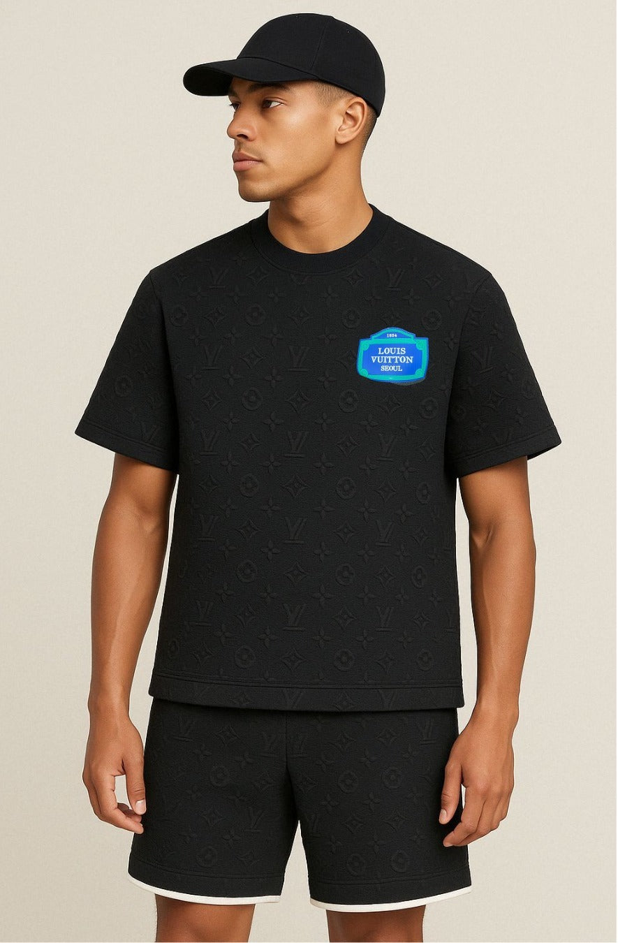 Product Description Step into refined streetwear with this Louis Vuitton Seoul Edition co-ord set, crafted in premium black fabric with an all-over embossed LV monogram pattern. The short-sleeve crewneck top features a standout blue Louis Vuitton Seoul badge on the chest, offering a vibrant pop of color against the sleek black base. Coordinated shorts complete the set, combining comfort with the brand’s timeless luxury appeal. Product Details High-quality fabric with an embossed Louis Vuitton monogram design throughout Elegant black colorway with subtle texture for a sophisticated look Short-sleeve crewneck T-shirt with bright blue Louis Vuitton Seoul chest badge Matching shorts with a relaxed fit for effortless style Perfect balance of luxury and casual wear Ideal for travel, upscale streetwear, and summer leisure
